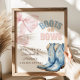 Boots ou Arcos Gender Reveal Sinal de Boas-vindas apresentando um par de botas de vaqueiro ocidentais e um arco giro de fita. Qual será o bebê?