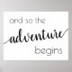 O preto e branco monocromático simples floresce na horizontal, "e assim a aventura começa", chá, festa ou sinalização de mesa de recepção com um roteiro divertido e casual, escrito à mão. O clássico design inclui uma moderna camada de tipografia de citações feitas à mão. A bela fonte com uma cor de fundo personalizável facilita o ajustado de qualquer tema. Para outras cores ou produtos correspondentes, visite a loja justFharryn Zazzle ou entre em contato com o designer, c/o fharryn@yahoo.com Todos os direitos reservados. #zazzlemade
