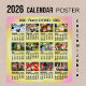 2026 - Poster de Calendário anual dos Gnomos Engraçados, totalmente personalizável, sobre um plano de fundo de gradiente colorido. 12 meses de fotos reais do Gnomo. Você pode personalizar o texto "2026 Funny GNOMEs 2026" e alterar todas as 12 fotos na Seção Personalizar