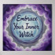 Este poster de branco apresenta uma impressão de tinta aquosa de uma paisagem de nuvem de fantasia com as palavras inspiradoras Embrace Your Inner Witch.