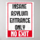 Poster Insano Apenas à Entrada de Asilo - Sem Saída Engra