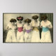 Uma fotografia vinda engraçada de várias mulheres jovens em pé em uma fila em bloomers, corsets e camisole. Cada um está segurando o topo de suas camisolas como se inspecionando o que está embaixo