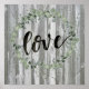 Inspiração de fazenda I por Jennifer Paxton Parker. Apresenta "Love" em roteiro com uma bela coroa verde e painéis de madeira em dificuldades.
