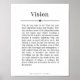 O poster VISION é um lembrete simples, mas poderoso, de que uma visão bem estruturada lhe dará direção e foco. Torna-se a razão de tudo o que fazemos e mantém-nos a andar, apesar da adversidade e dos desafios inevitáveis da vida. Mostre-o onde você verá todos os dias para lhe dar um estímulo quando mais precisar.