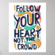 Adicione algum talento à sua decoração doméstica com esta inspiradora e motivacional tipografia moderna siga seu coração e não a poster da multidão!