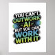 "Este design de Inteligência Artificial apresenta o ousado slogan ‘Você não pode trabalhar fora da IA, mas você pode trabalhar com ela’ na tipografia futurista. Perfeito para entusiastas da tecnologia, inovadores e programadores, este trabalho de arte de IA destaca a colaboração com a tecnologia e o futuro da criatividade."