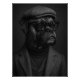 Boxer dog, intellectual, sophisticated, tweed, turtleneck, glasses, flat cap, black and white, portrait, animal, unique, vintage, academic, detective, film noir, witty, art, canine, gentleman, smart, wall art, decor, gift