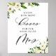 Quantos beijos para a futura Sra.? Adicione este sinal botânico ao seu chá de panela. ele apresenta buquê floral de aquarela de flores brancas e folhagem. Este cartaz floral "Quantos Kisses" é perfeito para chás de panela de inverno e primavera.