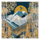 Wintery Western Colorado Mountain and Hummingbird - presente moderno e caprichoso de aquecimento doméstico ao estilo Klimt para amantes da natureza. Arte do estilo Klimt nouveau, arte natural em ouro azul e branco.
