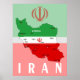 Poster Iran Map with Flag and Emblem
