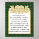 Belo design apresenta orações populares irlandesas com borda branca e dourada do coração Celta em fundo tartan irlandês. Que Deus vos dê... por cada tempestade, um arco-íris, por cada lágrima, sorriso, ou cada cuidado, uma promessa e uma bênção em cada julgamento. Para cada problema que a vida envia, um amigo fiel para compartilhar, para cada suspiro, uma canção doce, e uma resposta para cada oração.