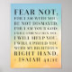 "Não temo, porque estou com você; não fique desanimado, pois sou seu Deus; eu vou fortalecê-lo, eu vou ajudá-lo, eu vou defendê-lo com minha mão direita e direita. - citação de bíblia de 41:10" de Isaiah.