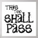 O poster preto e branco irá motivar e encorajar diariamente. O sentimento "isto também vai passar" está numa tipografia negra, arrojada, num fundo branco nítido.