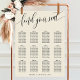 Bem-vindos aos seus convidados com esta elegante carta de casamento de creme de marfim. Apresentando um design minimalista com um roteiro moderno que diz achar seu lugar, este gráfico de assentos é perfeito para um sofisticado e na moda. A cor suave e o layout limpo fornecem uma aparência refinada e organizada, garantindo que seus convidados possam encontrar facilmente seus assentos. Personalize com seus nomes e mesas para criar uma adição única e coesa à decoração do casamento. Este assento acomoda até 12 mesas, fazer ideal para uma celebração bem planejada e elegante.