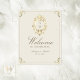 Welcome your guests in timeless style with this elegant ivory and gold baroque wedding welcome sign. Featuring a refined monogram crest, delicate gold ornamental details, and soft neutral tones, this design is perfect for classic, formal, and luxury wedding celebrations.