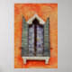 Poster com pintura de uma bela janela Renascentista italiana com vidro azul veneziano
