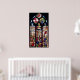 Janela da Escola Francesa mostrando a Natividade (vidro manchado) localizada na Igreja das Ruas. Foy, Conques, França. A Janela que mostra a Natividade (vidro manchado) foi criada no século 16.