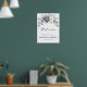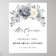 Cartaz de boas-vindas para jantar de ensaio de inverno floral elegante apresenta buquê de flores em aquarela cinza elegante, marfim e prata com folhagens em tons gelados. Entre em contato comigo para qualquer ajuda na personalização ou se precisar de qualquer outro produto com este design.