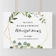 Este poster de boas-vindas janto das folhas verdes tropicais é perfeito para um simples janto de ensaio. A design apresenta lindas folhas verdes pintadas à mão, enfeitando um quadro geométrico dourado.