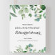 Este poster de boas-vindas ao janto de ensaio de folhagem de eucalipto verde é perfeito para um simples janto de ensaio. O design apresenta lindas folhas verdes de eucalipto, pintadas à mão, reunidas em buquês elegantes para embelezar seu evento.