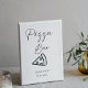 Sinal de bar de pizza... para uma festa de chá de casamento ou de janto de ensaio... O design romântico moderno incorpora letras negras tradicionais.