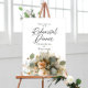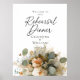 Bem-vindos aos seus convidados com um elegante sinal de boas-vindas do janto de ensaio, com delicada cor d'água verde, rosas, flores silvestres e detalhes dourados. Perfeito para adicionar um toque de classe ao seu janto de ensaio, este sinal garante boas-vindas quentes e na moda para todos os participantes. As cores do design de aquarela fazem deste design um jogo perfeito para qualquer estação.