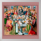Pintado em 1503 por um artista anônimo do Oriente Médio, este painel retrata o janto mencionado em John 12:1-3 que ocorreu em Bethany após a criação de Lázaro e pouco antes de Jesus chegar a Jerusalém no Domingo de Palma. Como tal, o humor é comemorativo — mais alegre e menos sombrio que o da Última Ceia que aconteceu na quinta-feira seguinte (quinta-feira de manhã). É o painel central da altarta trítica que agarra o altar de Martha do coro sul da Igreja de Nossa Senhora (Liebfrauenkirche) em Oberwesel, Renânia-Palatinado, Alemanha. Aqui, Jesus e Seus Doze Apóstolos estão sentados em uma mesa redonda, presumivelmente uma de várias na sala desde que o Evangelho alude à presença de mais participantes, incluindo Lázaro. A mesa é vista até o momento, melhor para ver os artigos de mesa e os alimentos. Os Apóstolos conversam entre si. Uma (Rua. Bartholomew?) fatia pão. No centro de primeiro plano, Ruas. Martha, vestindo um avental e carregando um prato de peixe, serve (como Ruas. John o coloca de forma sucinta). Enquanto isso, Rua. Mary, erradamente identificada na época em que a peça foi pintada com a penitente Magdalene e uma mulher pecaminosa e anônima, ajoelha-se em frente. Ambas as mulheres vestem vestidos de materiais magníficos. Entre eles, ajoelha-se o doador, o Cânon Peter Luteran, que está representado numa escala muito reduzida. A cena lotada brilha com energia e o barulho implícito de conversas animadas e de chocantes loucos. + Veja também a Rua. Itens da Martha — aventais, luvas de forno, suportes de potharia e bandejas de serviço — da nossa série de Santos Apron (q.v.) para misturar e combinar! + Image Credit (M 055): Foto de Rolf Kranz de uma pintura de dominio público que tem mais de 100 anos da WikiMedia Commons (Por Rolf Kranz - Trabalho próprio, CC BY-SA 4.0, https://commons.wikimedia.org/w/index.php?curid=106002864). A foto foi cortada firmemente em um retângulo sem bordas.