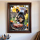 Esta imagem encantadora apresenta um Bulldog Francês adormecido experientemente no chapéu e avental de um chef branco, grelhando intensamente um bife suculento sobre uma chama aberta sobre uma mochila ao ar livre. Com utensílios grelhados na pata, o canino focado prepara a refeição em meio à fumaça ascensão, incorporando uma cena culinária humorística e carinhosa. O fundo sugere um cozinhar quente e ensolarado ao ar livre