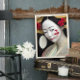 Poster Japonês Floral Geisha Red Dourado Fantasy Art Post