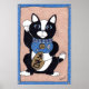 Póster Japonês Lucky Tuxedo Cat Maneki Neko Folk Art