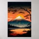 Poster Japonês Montanha e Sun Ukiyo e ilustração