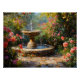 Esta pintura retrata um jardim vibrante cheio de rosas florescentes em vários tons de rosa e vermelho, rodeando uma charmosa fonte de pedra. A água se cascata suavemente do topo, criando uma atmosfera de calcanhar no meio da exuberante vegetação. Um caminho de pedra iluminada pelo sol atravessa o jardim, convidando visitantes a explorar o oásis pacífico. A interação da luz e da sombra melhora os tons quentes e ouros da cena, destacando as delicadas pétalas e as pedras texturizadas. Este jardim pitoresco exude elegância, tranquilidade e beleza eterno.