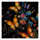 Borboleta Whimsical Garden Apron com laranja e preto. Flores em amarelo e azul.