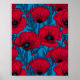 Poster Jardim de papoila vermelho em azul