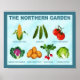Um bom exemplo de jardinagem em lugares com climas frios como o Alasca, Minnesota e Canadá. Você não pode cultivar tudo, mas experimente aqueles ilustrados aqui: Milho doce Chefe Yukon, ervilhas de neve, tomate Chefe Yukon, Couve Rei Janeiro, batata Dourada Yukon, rabanete de cicelo e alface Iceberg. Cada um deles é rotulado e o texto lendo, "O JARDIM NORTE" também é exibido. Você pode mudar facilmente a cor da borda ou eliminá-la completamente.
