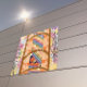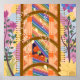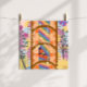 Uma peça vibrante com listras coloridas, padrões florais, elementos geométricos e desenhos abstratos. O rico uso de flores, linhas e formas fornece uma composição dinâmica e visualmente atraente que é perfeita para os entusiastas da arte moderna.