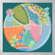 Padrão circular colorido de abstrato com elementos de planta. Esta imagem apresenta um padrão de abstrato circular vibrante dividido em várias seções com designs exclusivos. Reforçada por elementos vegetais como folhas e flores, essa composição combina formas geométricas e orgânicas, criando um trabalho de arte harmonioso e visualmente engajante.