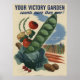 Uma reprodução de uma vintage da Guerra Mundial, com um poster de jardim e legumes, com texto que diz: "Seu jardim de vitória conta mais do que nunca!".