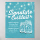Modelos de Cartaz de Decoração de Casamento de Menu de Bebida de Cocktail de Assinatura - Letra Elegante e Jarras de Mason de Casal Vintage e Luzes de Corda em Fundo Floral Azul Claro. Um Design Perfeito para o Seu Grande Dia. Todo o estilo de texto, cores e tamanhos podem ser modificados para atender às suas necessidades!