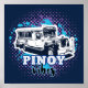 A arte em preto e branco de Jeepney com o texto de Pinoy Vibes sobre fundo de tinta azul e rosa. Ver toda a coleção em Moondust Designs ©