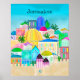 Belo poster de viagens de Jerusalém em cores brilhantes.