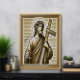 Nesta imagem impressionante, Jesus Cristo é mostrado abraçando um ouro brilhante cruz com compaixão e reverência. Sua expressão tranquila irradia o amor divino e a paz, simbolizando Seu sacrifício inabalável pela humanidade. As matizes de ouro criam um brilho celeste, elevando o significado espiritual do trabalho de arte. Um delicado crucifixo ao seu alcance enfatiza ainda mais a mensagem de resgate e perdão. Esta inspiradora representação convida os espectadores a meditar sobre o poder transformador da viagem de Cristo e do seu compaixão sem limites. Ideal para espaços inspirados na fé, esta elegante representação captura o coração da devoção cristã e oferece um farol de esperança espiritual.