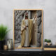 No brilho suave de um novo dia, uma figura que incorpora Jesus se posiciona em uma porta de madeira intacta em uma parede de pedra. Sua gentil batida aguarda uma resposta, simbolizando um convite para despertar espiritual. A cena tranquila é banhada à luz quente do nascer do sol, insinuando a esperança e a renovação que um novo dia traz. A pacífica luz da manhã enfatiza a timidez desta cena, enquanto Jesus pacientemente se posiciona na antiga porta, Sua presença incorporando amor e compaixão. A porta intacta e o muro robusto de pedra transmitem uma sensação de história e permanência, contrastando lindamente com o brilho radiante do novo amanhecer. Esta trabalho de arte em movimento convida os espectadores a pausarem e a refletirem sobre o suave apelo do Cristo e o constante convite para a renovação espiritual. Seja exibido em um espaço sagrado ou pessoal, ele oferece um inspirador lembrete de esperança, fé e conexão divina.