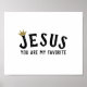 Sinal de citação cristã moderna "Jesus você é meu favorito" com uma coroa Dourada sentada sobre a letra J. Este Sinal Cristão Declara Fé e Amor em Jesus pelas Vossas Paredes Espaciais Vivas!