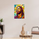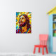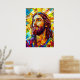 Arte de Vidro Mantida de Jesus Cristo com um belo coelho de Páscoa e ovos vibrantes de Páscoa. Bichos bonitos para ressuscitar a religião cristã. Felz pascoa! Poster de Páscoa vibrante.