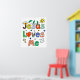 Mensagem de texto cômico e decorativo que diz as palavras JESUS ME AMA. A área de fundo é totalmente transparente para que você possa personalizar facilmente e escolher qualquer cor que quiser. Imagem disponível em vários presentes e produtos.