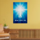 JESUS TE AMA - poster elegante com cruz branca sobre iluminação de fundo azul.