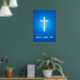JESUS TE AMA - poster elegante com cruz branca sobre iluminação de fundo azul.