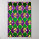 joias, fundo em Mardi Gras de losango roxo e verde, lírios de ouro decorados.