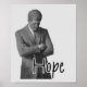 Este design de História dos Estados Unidos mostra o presidente John F. Kennedy, olhando solenemente para baixo a palavra "Esperança".